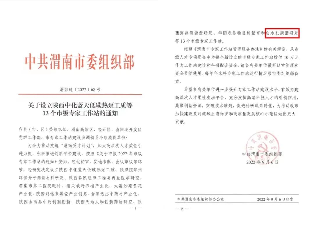 【概要描述】为全力推动实施“渭南英才计划”,加大高层次人才柔性引进力度,积极推进创新平台建设,按照《关于申报2022年市级专家工作站的通知》安排,经过初审、实地考察、会议审议等环节,经渭南市委组织部研究决定设立陕西中化蓝天低碳执泵工质、陕煤院华州环保分子筛新材料研发、陕西森凯组织工程与再生医学研究、草莓SOLO视频下载酒研发等13个市级专家工作站。