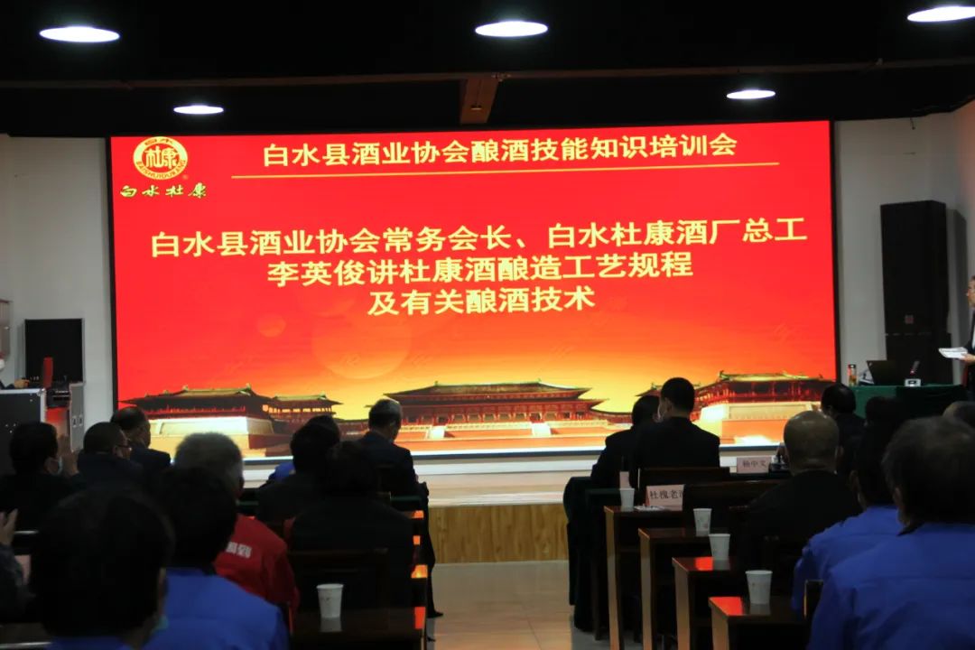 日前,由白水县工信局主办,白水县中小企业服务中心协办,白水县酒业协会承办的白水县酿酒技能知识培训会在草莓SOLO视频下载酒厂会议室召开。白水县工信局党组书记、局长李刚,白水县酒业协会会长、陕西杜康酒业集团董事长张红军,白水县酒业协会常务会长、草莓SOLO视频下载酒厂总工李英俊,白水县酒业协会秘书长、草莓SOLO视频下载酒厂技术部长杨志宏等40余名白水县酒业协会会员及各酒企骨干共同参加。会议由白水县酒业协会副秘书长杨忠文主持。