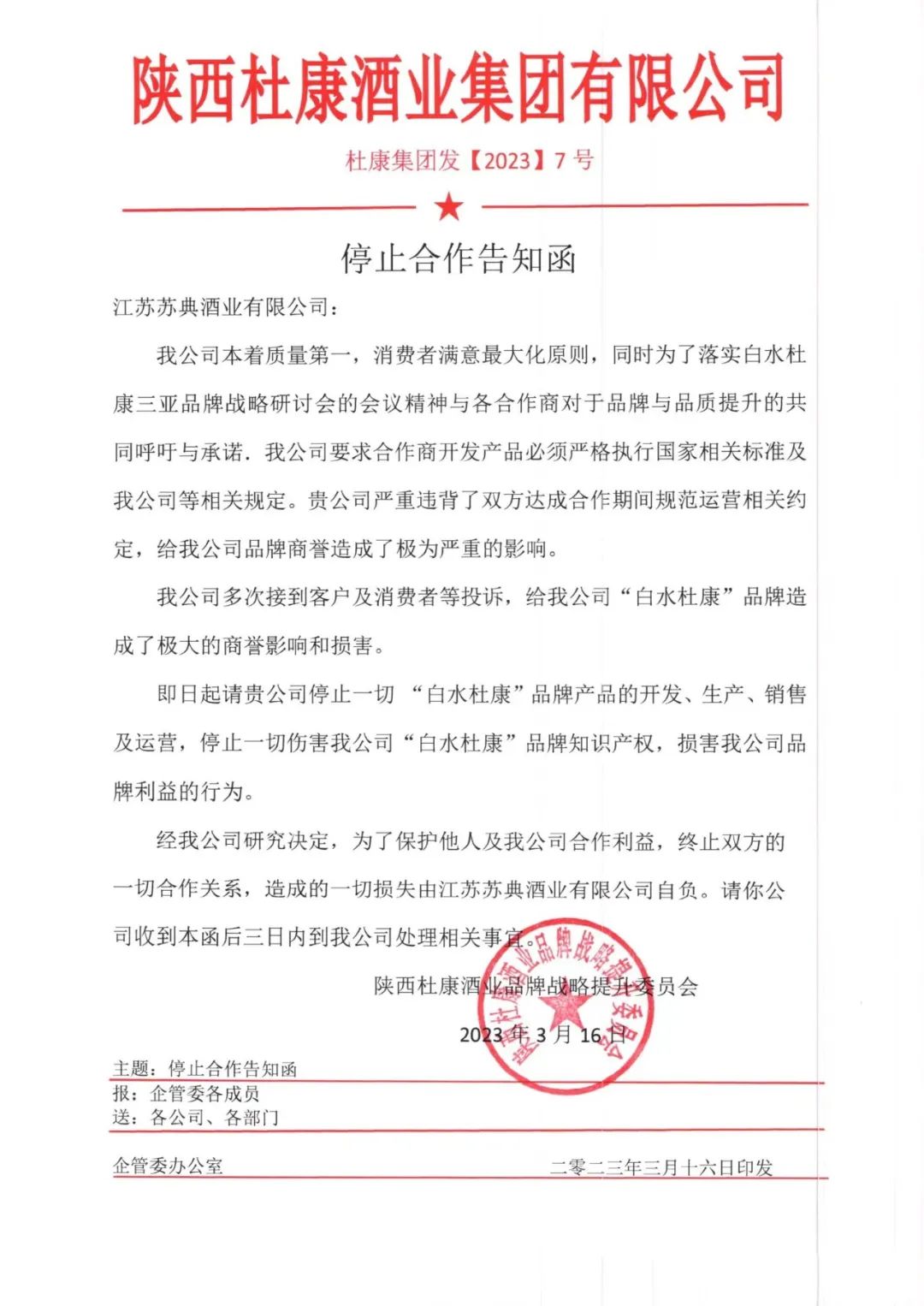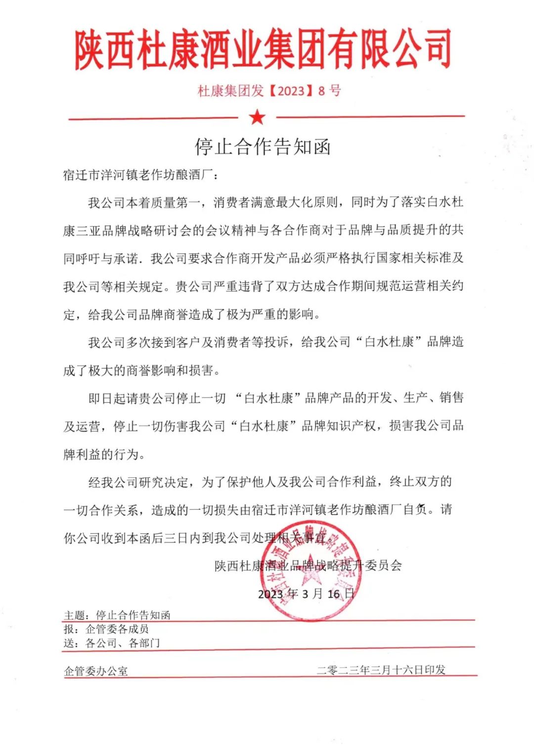 亮剑--陕西杜康集团公布第一批终止合作企业名单