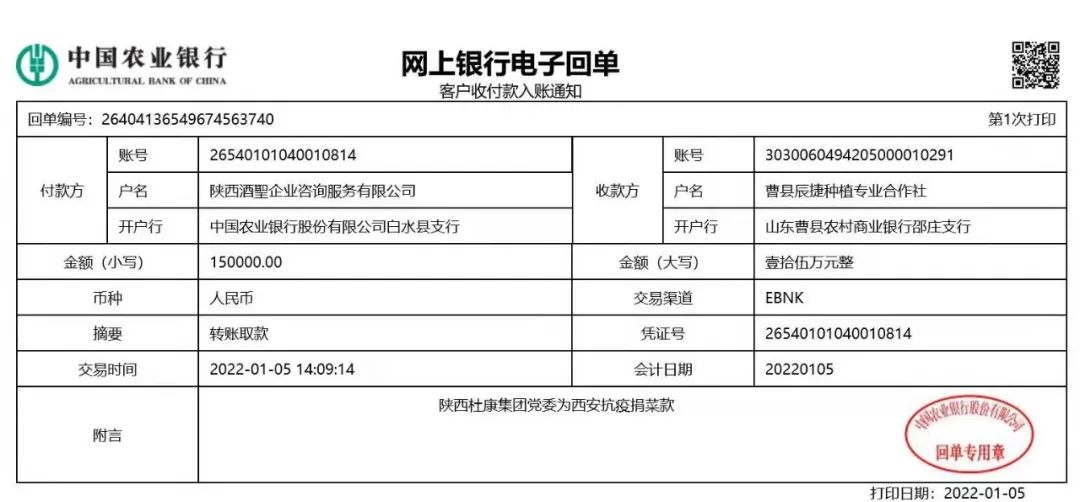 同心抗疫,共克时艰。自陕西疫情发生以来,陕西杜康酒业集团响应政府疫情防控号召,积极履行社会责任,在第一时间筹集抗疫急需物资,针对一线物资紧缺群众及防疫一线工作人员进行捐赠,缓解疫情一线物资紧缺问题,为抗击疫情贡献一份坚实的力量。