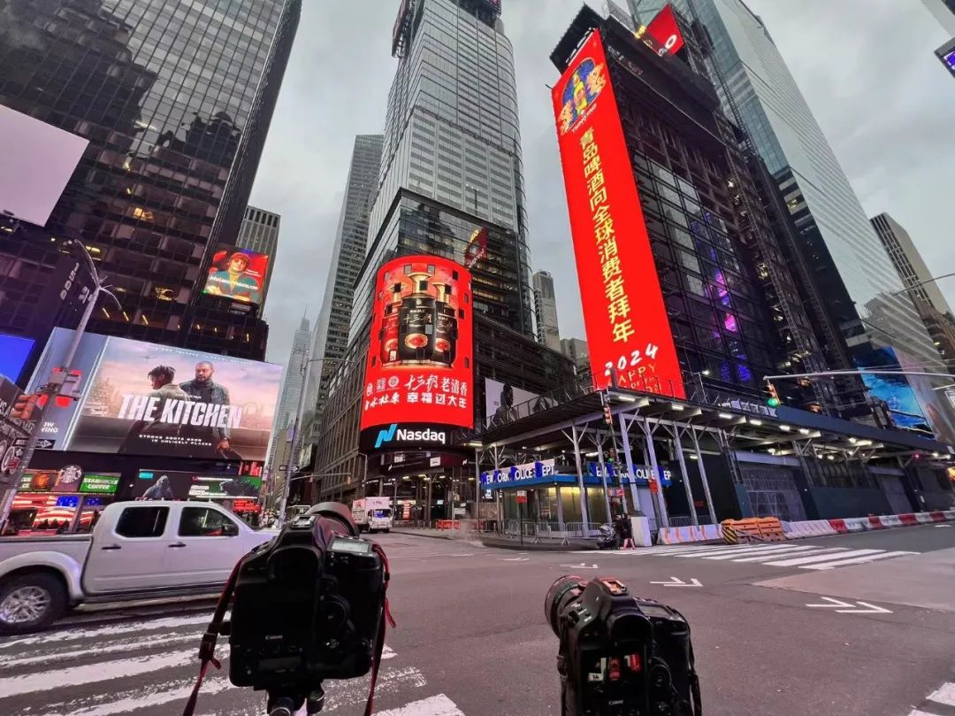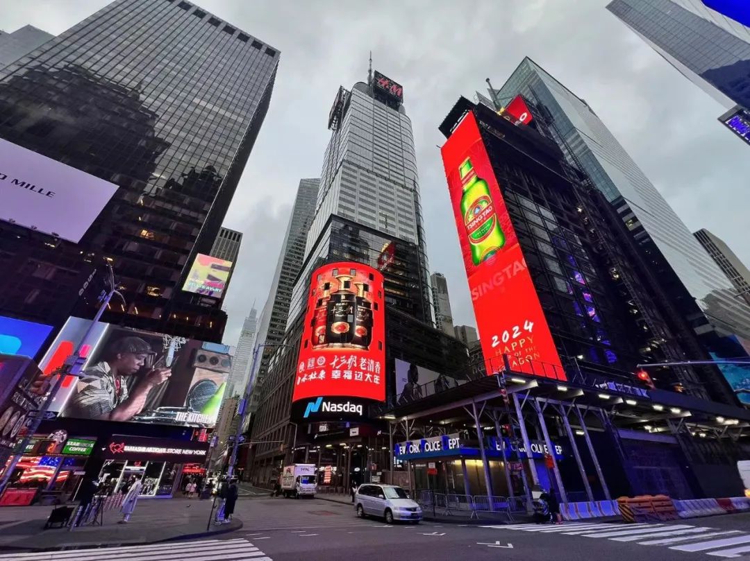 草莓SOLO视频下载广告登陆美国纳斯达克时代广场与青岛啤酒广告同框