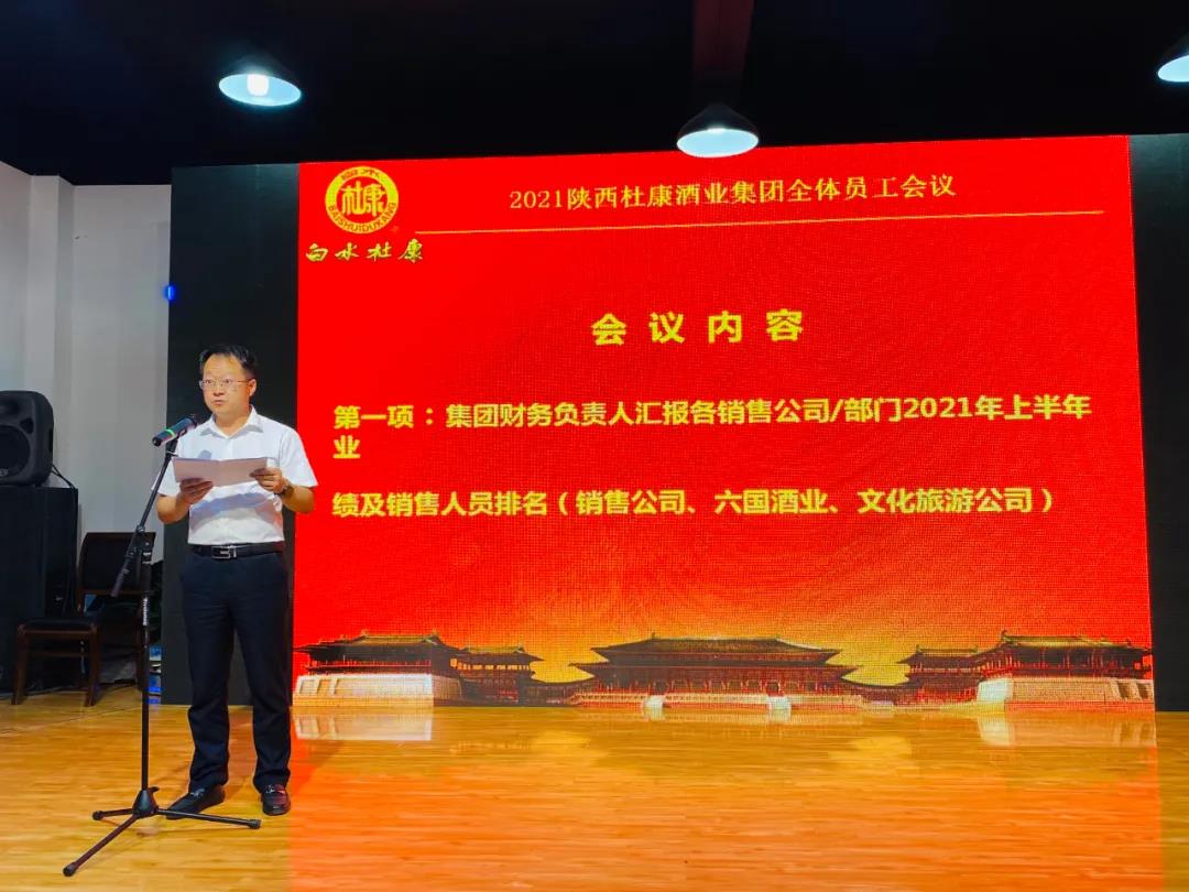 6月30日下午,陕西杜康酒业集团有限公司“2021全体员工会议”在杜康酒厂圆满召开。集团总裁王勇盛主持会议,集团财务部程永作上半年工作总结报告,董事长张红军作重要讲话。