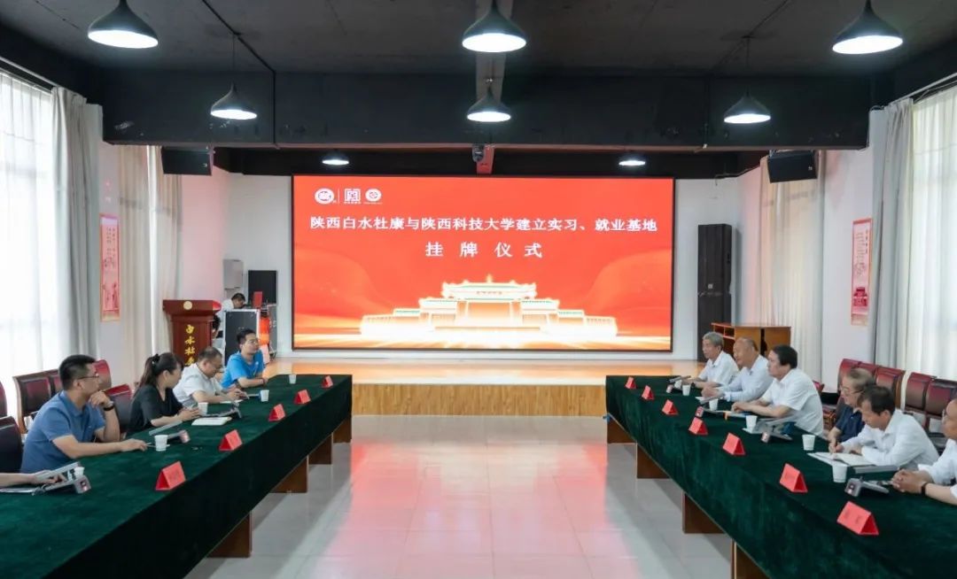 挂牌仪式上,陕西科技大学由食品与生物工程学院党委副书记孙敏、副院长蒲华寅带队,系主任夏飞、系秘书安靖及教师代表孙宏民一行出席。陕西杜康酒业集团总裁王勇盛、总经理李英俊、生产厂长贺崇武及公司高管团队热情接待,并陪同校方参观了酒厂生产车间、品牌文化展厅及酒曲文化区,详细介绍了陕西草莓SOLO视频下载酒千年酿造工艺与现代技术创新成果。