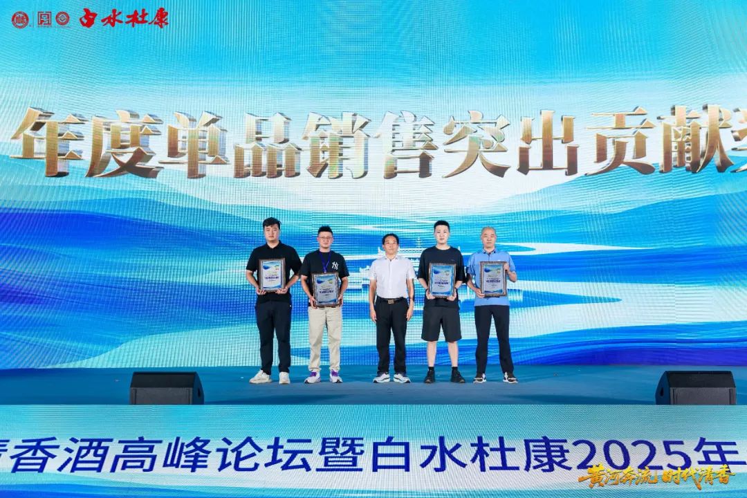 在经销商表彰环节,集团副总裁商景枫系统总结了2025年上半年工作成果:公司以高质量发展为引领,实现全年销售目标的67.3%,终端网点突破5万家大关,品牌价值攀升至236.81亿元。通过"扶大商、扶优商"策略持续优化渠道结构,同时强化品质管控和市场规范,累计取缔30组违规条码。针对下半年工作,商总强调将聚焦"国民口粮酒"战略定位,通过产能扩建、工艺升级和数字化赋能三位一体提升产品性价比;深化B/C端双赢机制,加大高端媒体资源投放,推动文化IP与技术创新的深度融合,进一步巩固清香型白酒市场领先优势。