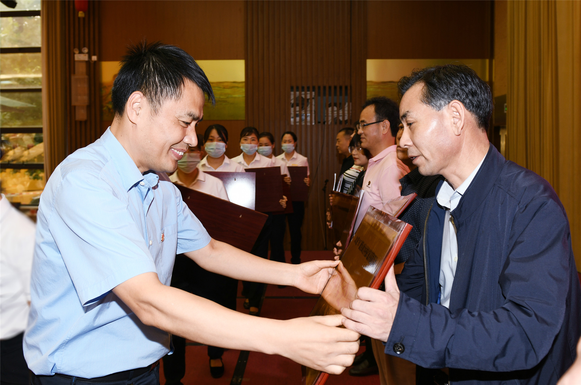 市人大常委会原党组书记、副主任、市慈善协会会长雷超武向爱心单位、企业颁发“爱心企业”荣誉牌