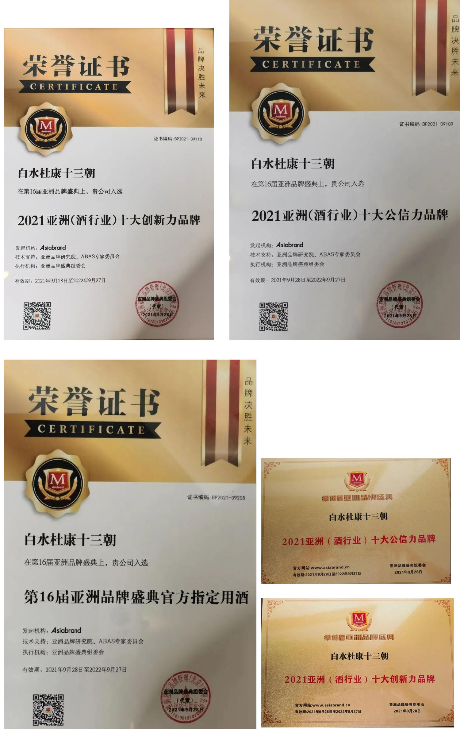 品牌作为企业无形资产,是企业生存发展的重要战略性资源,对于获得市场认同、提升企业形象具有重要意义。本次三项荣誉的获得,充分表明了外界对陕西杜康酒业集团卓越的品牌价值、品牌实力和品牌影响力的充分肯定和认可。