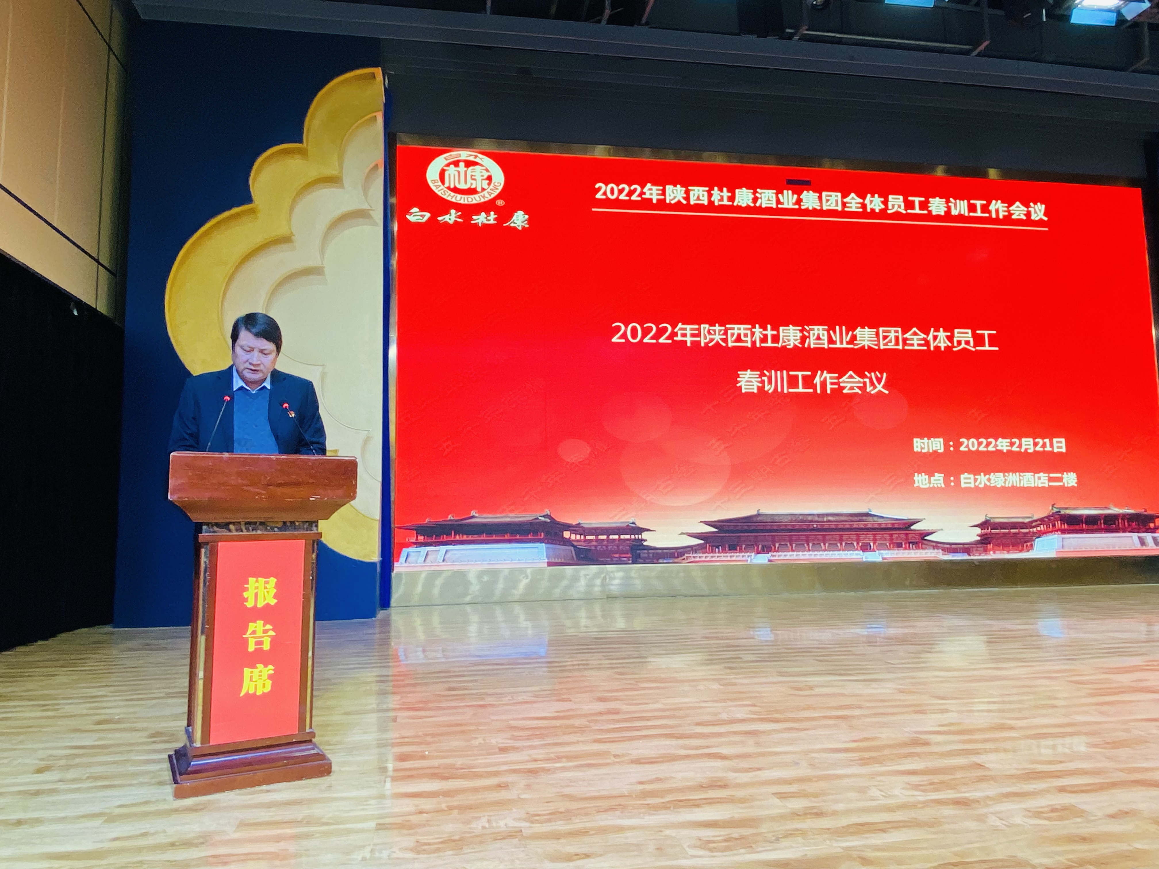 21日下午,陕西杜康酒业集团召开全员春训总结会。集团党委书记周军、董事长张红军、总裁王勇盛、副总裁商景枫、董事长助理王乾以及集团各部门负责人、各区域销售经理、酒厂部分员工代表200余人参加会议。会议谋划2022年总体工作,安排部署下一步工作任务,为实现公司2022年经营目标开好局、起好步。会议由集团总裁王勇盛主持。