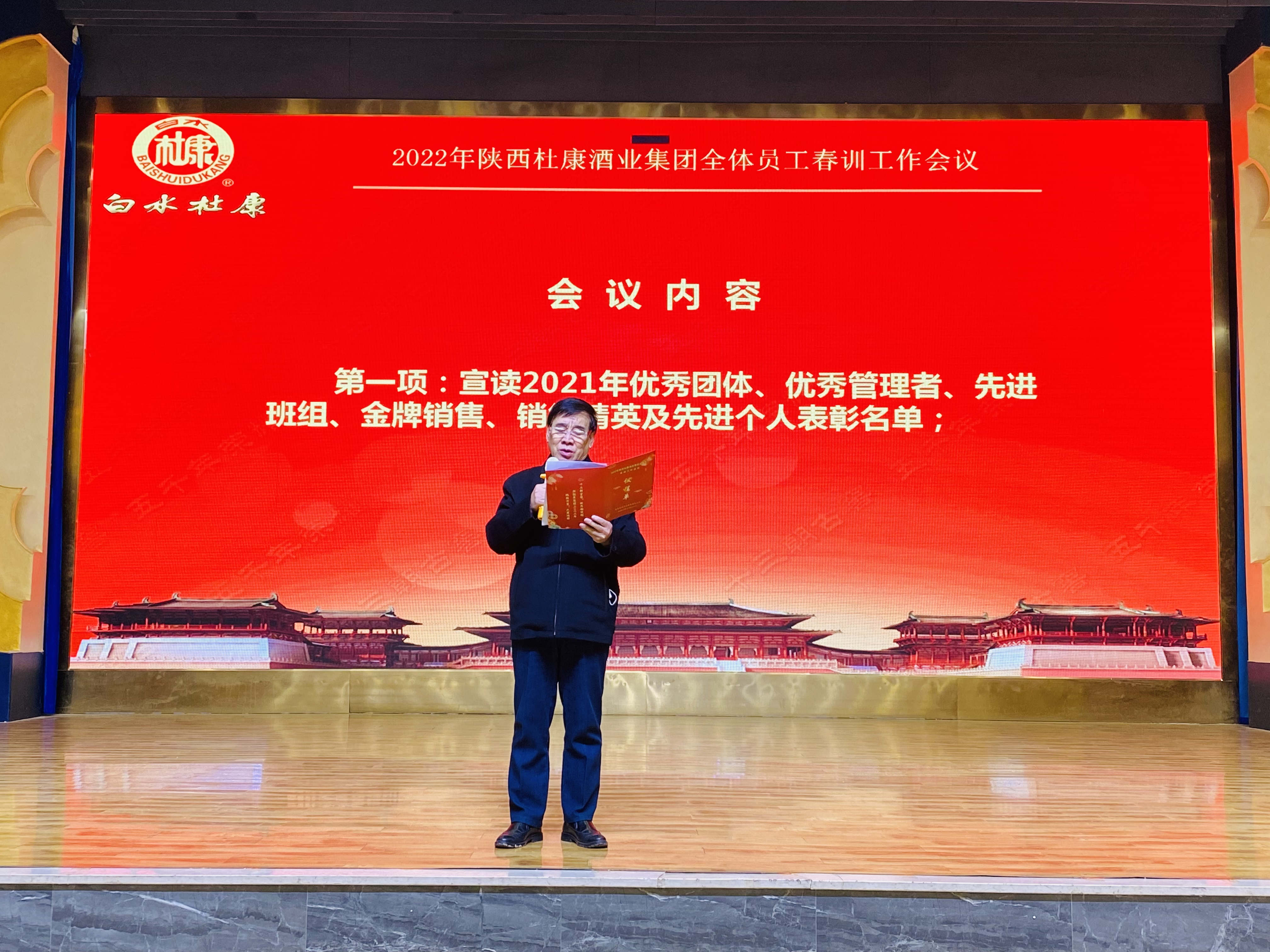 会上,集团党委书记周军先生宣读《陕西杜康酒业集团关于表彰2021年度先进集体和先进个人的决定》
