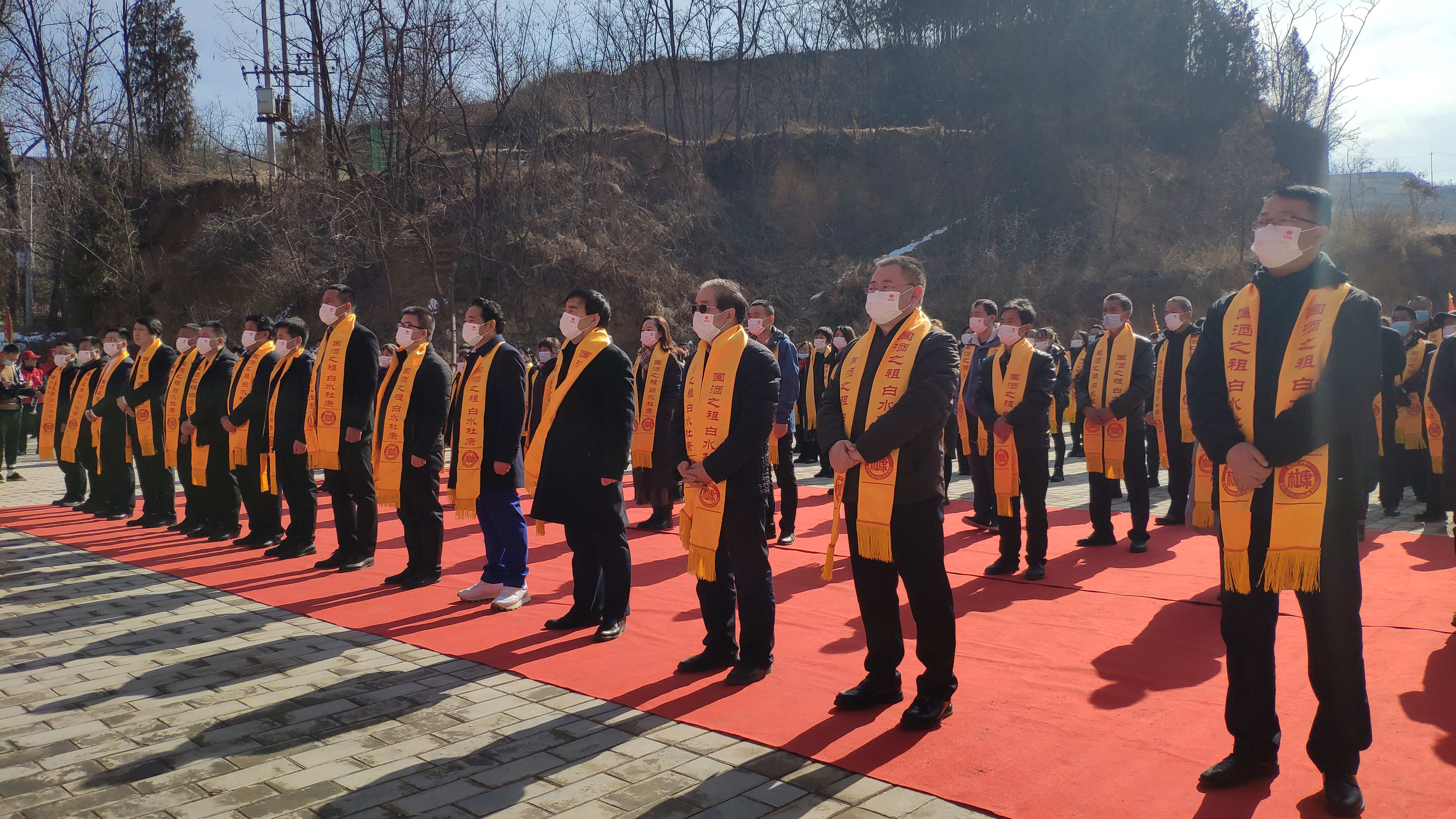 陕西杜康酒业集团董事长张红军率领公司高管、员工代表、部分经销商代表、及因疫情不能前来的线上海内外酒界专家、酒企精英,杜康镇政府领导,千年杜康古庙理事会成员社、杜康后裔等1800余人在酒圣大殿广场祭祀台前列队肃立,仪容庄重,虔诚祭拜,追思功绩,传承初心,勇担使命,共谋发展。