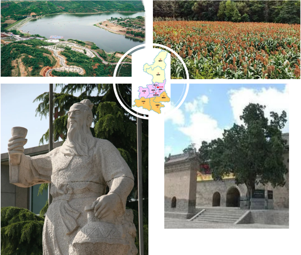 白水,地处陕西行政版图的中心,占地986平方公里,是连接关中和陕北的交通要地。在这片占国土面积万分之一的土地上,气候湿润,四季分明,土壤肥沃,水质甘甜,物产丰富,有香飘四海的槐花林,有如诗如画的林皋湖,有一望无际的红高粱,有甘甜爽口的杜康泉,还有千百年来孕育出的“文化之祖”仓颉造字和“白酒鼻祖”杜康酿酒,这一切推动着人类社会不断进步。每年都有成千上万的海内外华夏儿女,从四面八方涌来寻根祭祖,体悟圣迹山水。